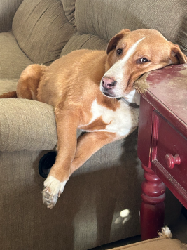 Finley was rescued from a shelter after the tv put out an announcement that the shelter was over max and needed dogs to be adopted. We hit the jackpot! I love my girl who is