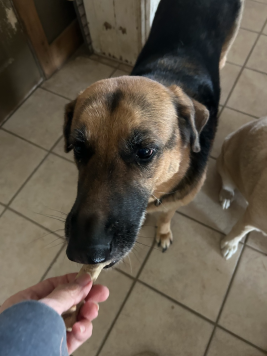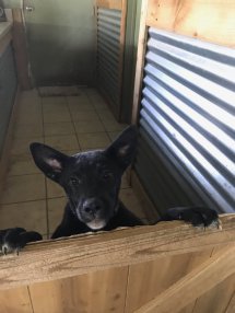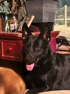 Casey was found on the road and after spending an hour trying to catch her as she kept growling and showing her teeth .... has been sweet and loving .... until around strangers then her dark side
