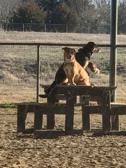 several dogs in it, Gemma came forward and sat and my sister got to talk to her ..... THEN Gemma did the unthinkable and stood up and backed up and sat down so that Carly could then come bouncing in